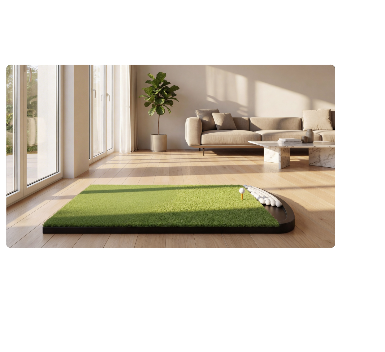 - 1. Patented Arc-Shaped Ball Tray Design: Featuring a unique arc-shaped built-in ball tray, this patented all-in-one golf hitting mat allows effortless practice. The ergonomic arc design helps you hit continuously without bending down to pick up balls, keeping your rhythm and focus on every swing.